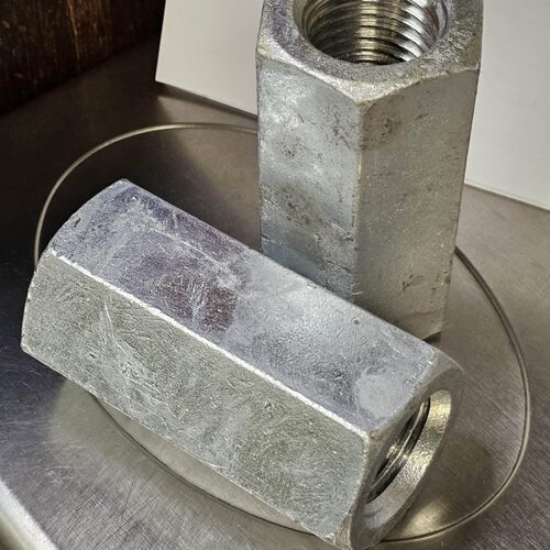 - Oversize tapped nuts are checked to confirm the oversize dimension is correct and will accept a galvanised bolt thread.