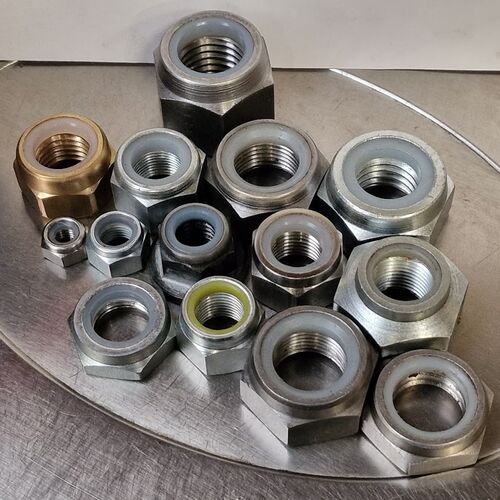 Nylon insert nuts, also known as nyloc nuts, nylock nuts, aircraft lock nuts, elastic stop nuts, or nylon insert stop nuts, are hexagon nuts featuring a captive polyamide insert ring - typically manufactured from Nylon 66 polymer. This non-metallic collar is positioned within the nut body, usually in the upper portion, with an internal diameter deliberately sized smaller than the major diameter of the mating screw thread.