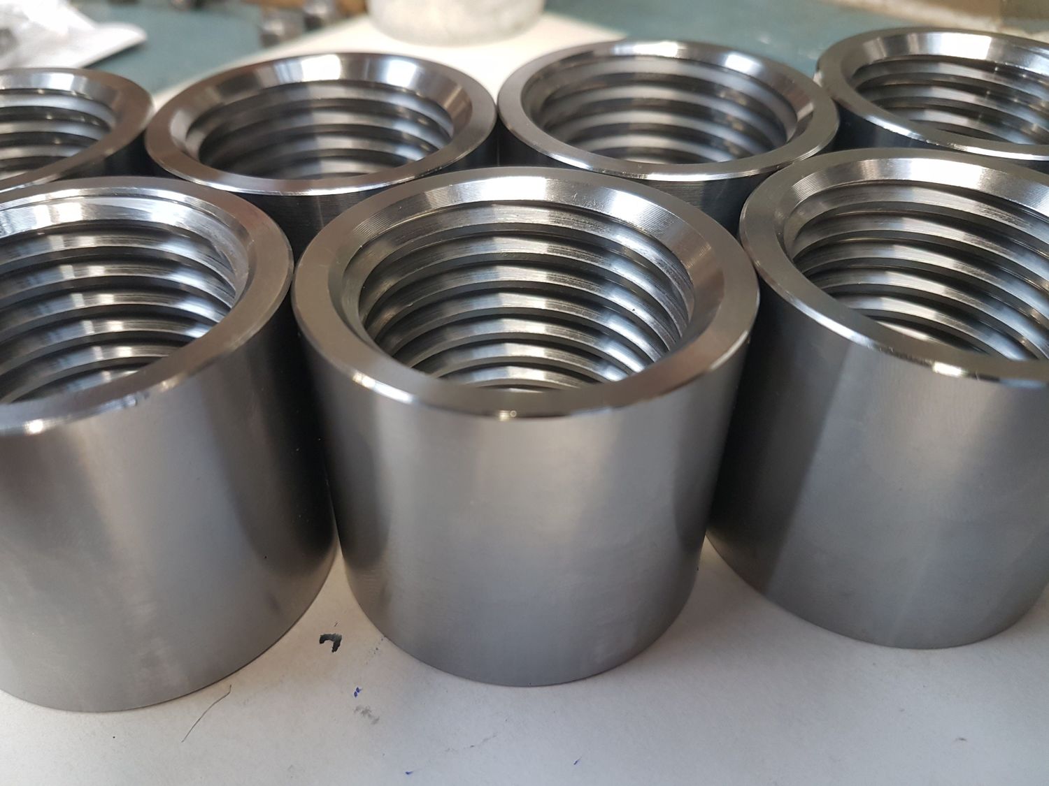 Thread gauge verification (go/no-go gauges). Dimensional inspection of external diameter, thickness, and hole positions. Visual inspection of finish and surface quality. Material traceability and certification when required.