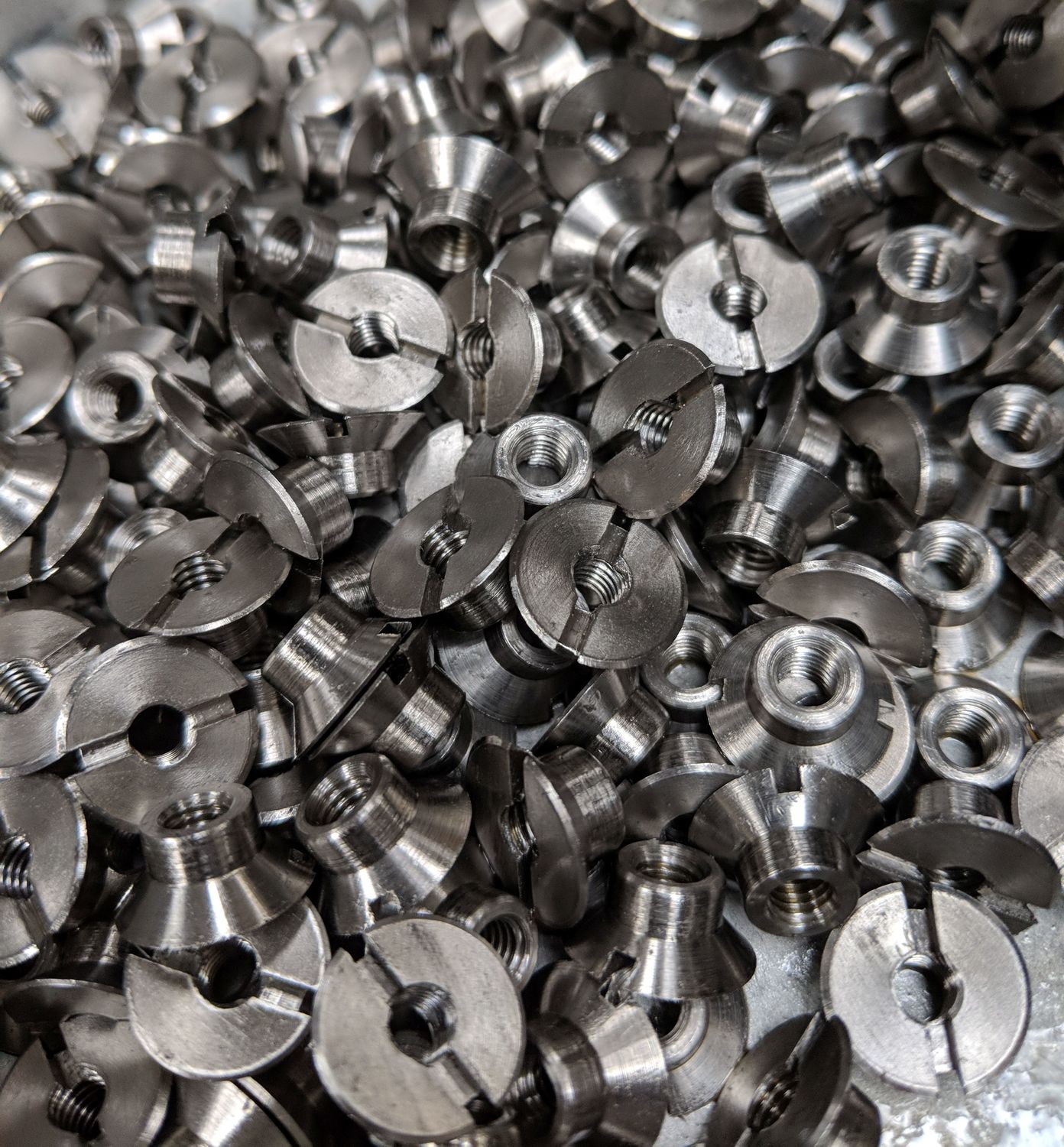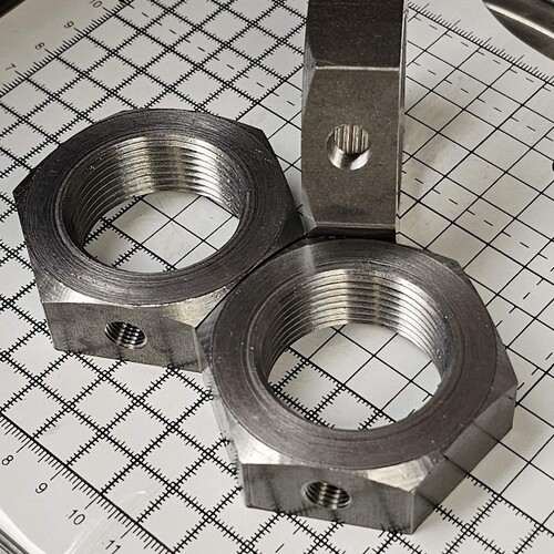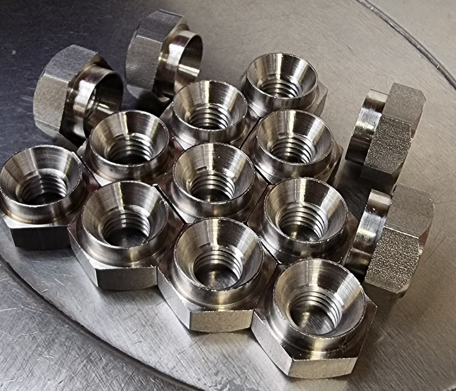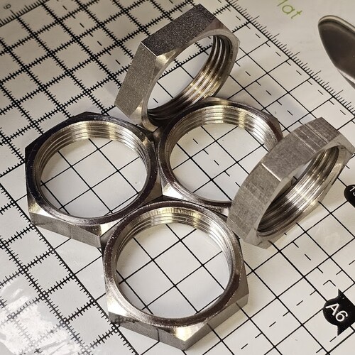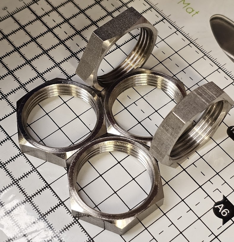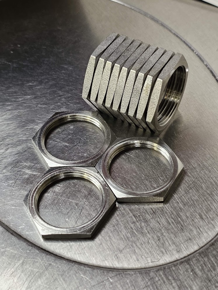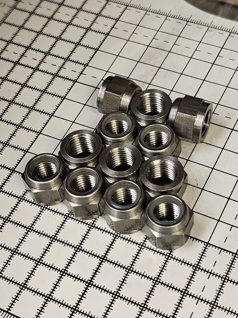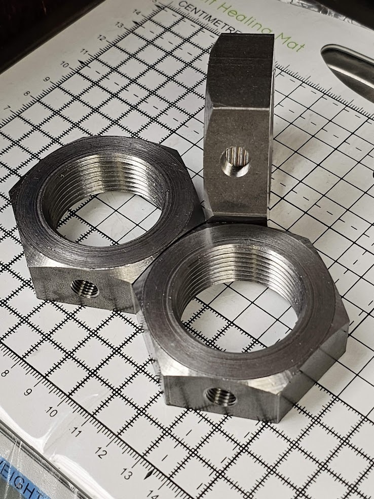 We pride ourselves in having a flexible machine shop with a large selection of tooling at hand to successfully manufacture your nuts for you. Ultimately, if we can turn it, you can have it! Internally threaded fasteners are our speciality. The size range we currently offer is as follows: