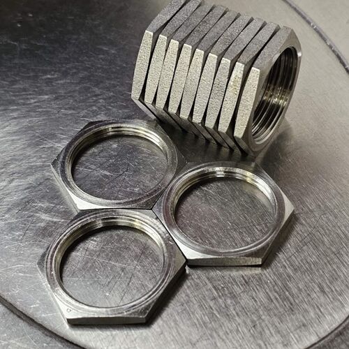 If you would like an all metal locking feature combined with a cross tapped and flanged nuts – we can do it. We have the expertise to combine a number of turning and machining operations to manufacture nuts to your drawing.