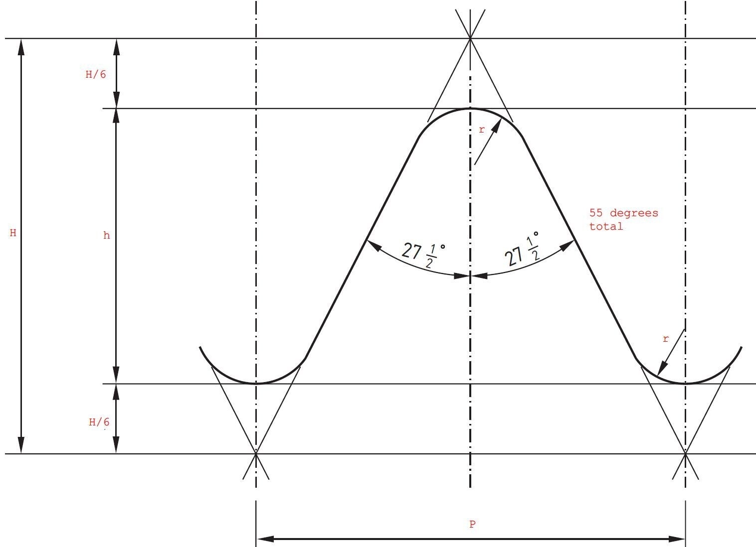 - Root profile: Retains the rounded root radius of standard Whitworth